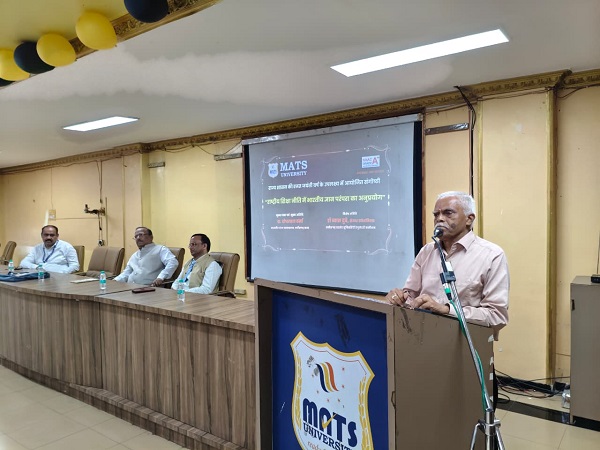 Mats University रायपुर में 15 अक्टूबर 2025 को “राष्ट्रीय शिक्षा नीति 2020 में भारतीय ज्ञान परंपरा का अनुप्रयोग” विषय पर एक दिवसीय संगोष्ठी का भव्य आयोजन किया गया। इस संगोष्ठी का मुख्य उद्देश्य भारतीय प्राचीन ज्ञान परंपरा—जैसे योग, आयुर्वेद, दर्शन, संगीत, तथा शिक्षा प्रणाली में गुरु-शिष्य परंपरा—को आधुनिक शिक्षा प्रणाली से जोड़ने की संभावनाओं पर विचार करना रहा।
