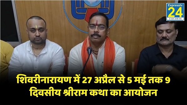 रायपुर। CG NEWS : राजधानी रायपुर के मोतीबाग स्थित मधुकर खेर स्मृति प्रेस क्लब में आयोजित प्रेसवार्ता में डॉ. अशोक हरिवंश एवं विशाल खंडेलवाल ने जानकारी दी कि 27 अप्रैल से 5 मई 2026 तक शिवरीनारायण में 9 दिवसीय भव्य श्रीराम कथा का आयोजन किया जा रहा है।